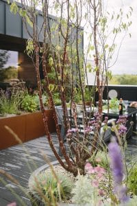 We also selected the wonderful Juneberry tree (Amelanchier lamarckii) for its year-round interest including bouquet of small white flowers in spring through to the deep red berries in autumn, as well as being very attractive to pollinators.