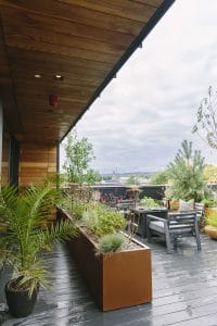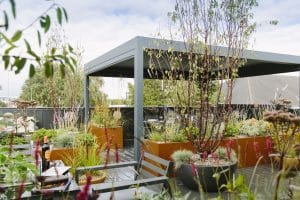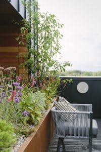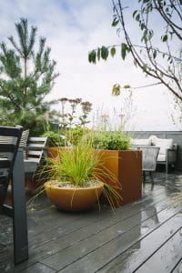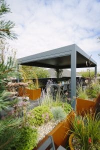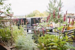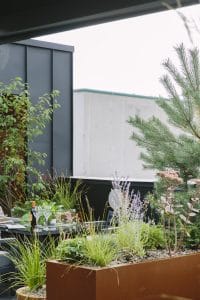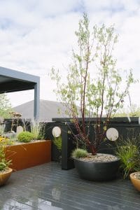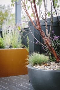 Our team designed bespoke lightweight fibreglass planters into the garden design, where a portion of the planter was filled with empty plastic bottles to further reduce the weight, as well as reducing waste by using materials that would go to landfill.