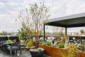 The rooftop area was divided up into small areas, with tables and chairs and relaxing seating areas, using planters to create the idea of privacy.