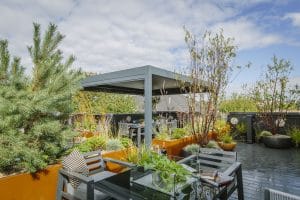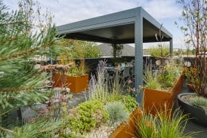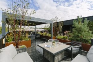 WM Design Studio created the landscape and roof garden design for this stunning luxury outdoor roof garden entertaining and living space in Wigan, Lancashire.